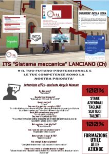 “Diplomato nel 2016 presso l’ITIS di Lanciano “Da Vinci-De Giorgio” e successivamente all’ITS Sistema Meccanica nel 2018″